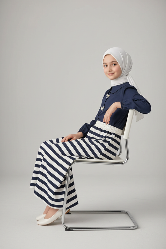Kız Çocuk Çizgili Etekli Takım
