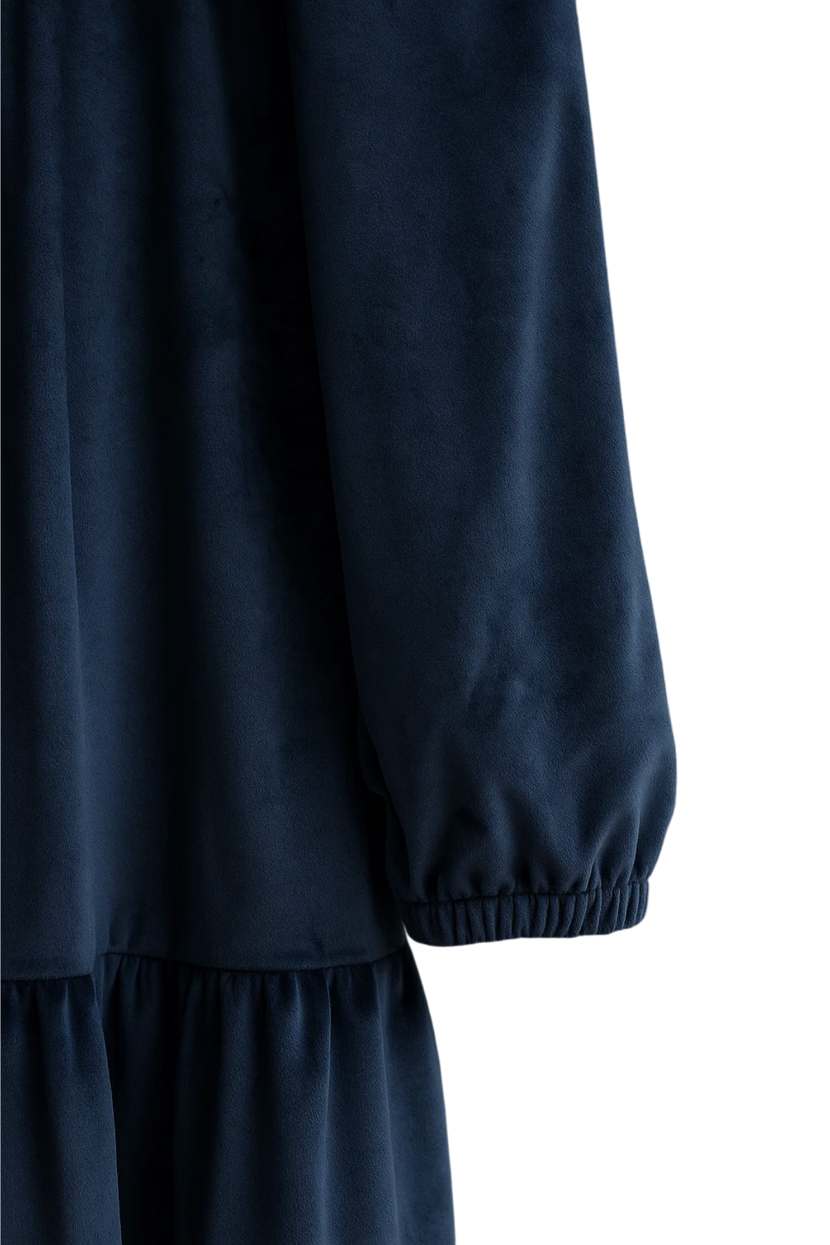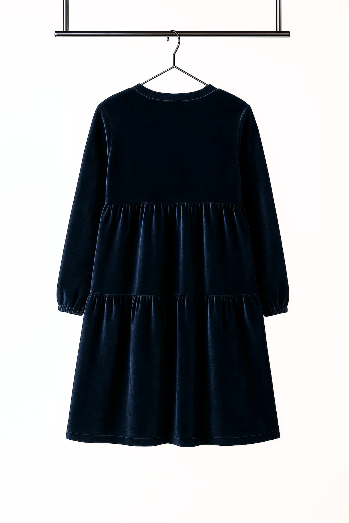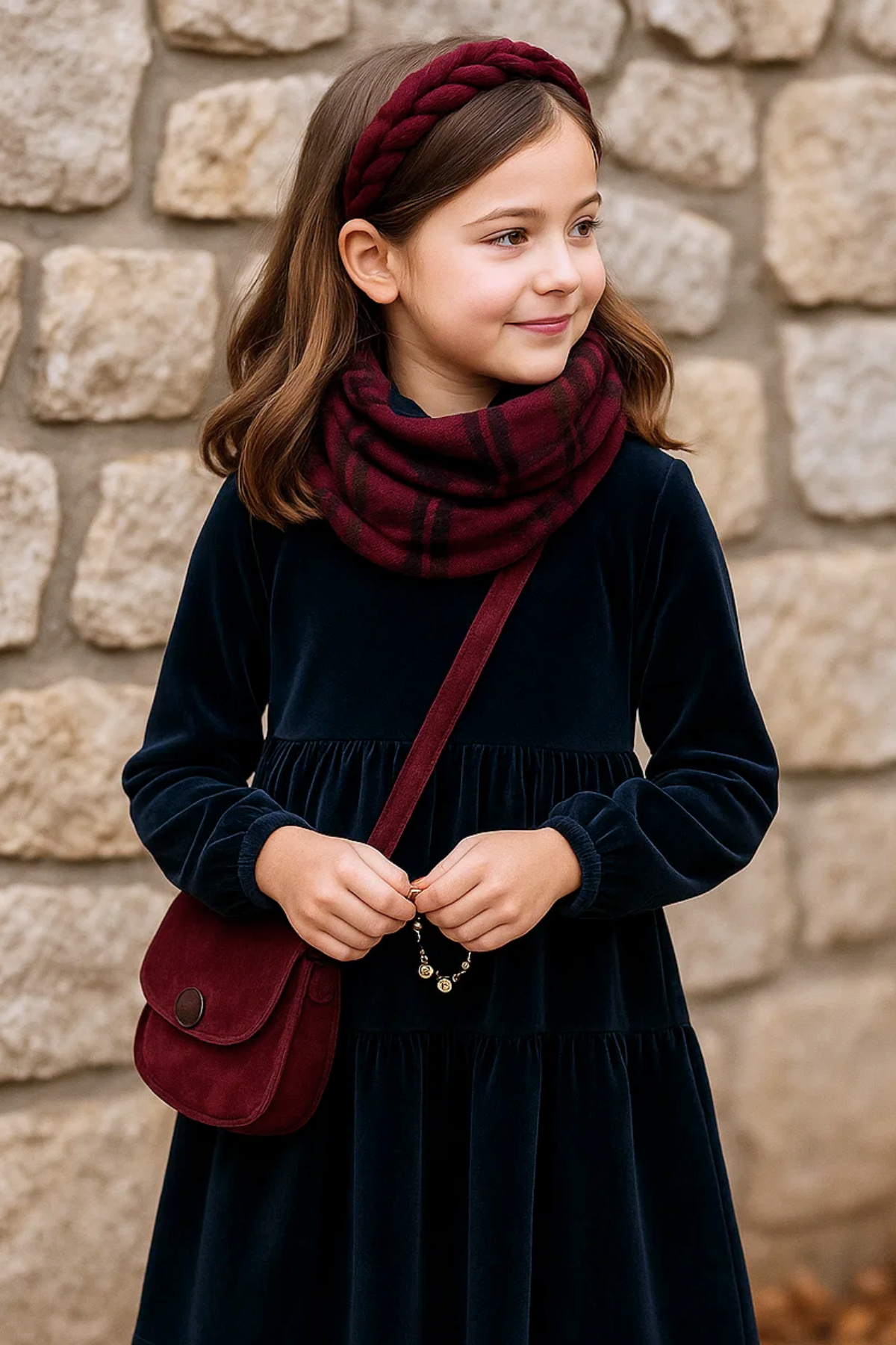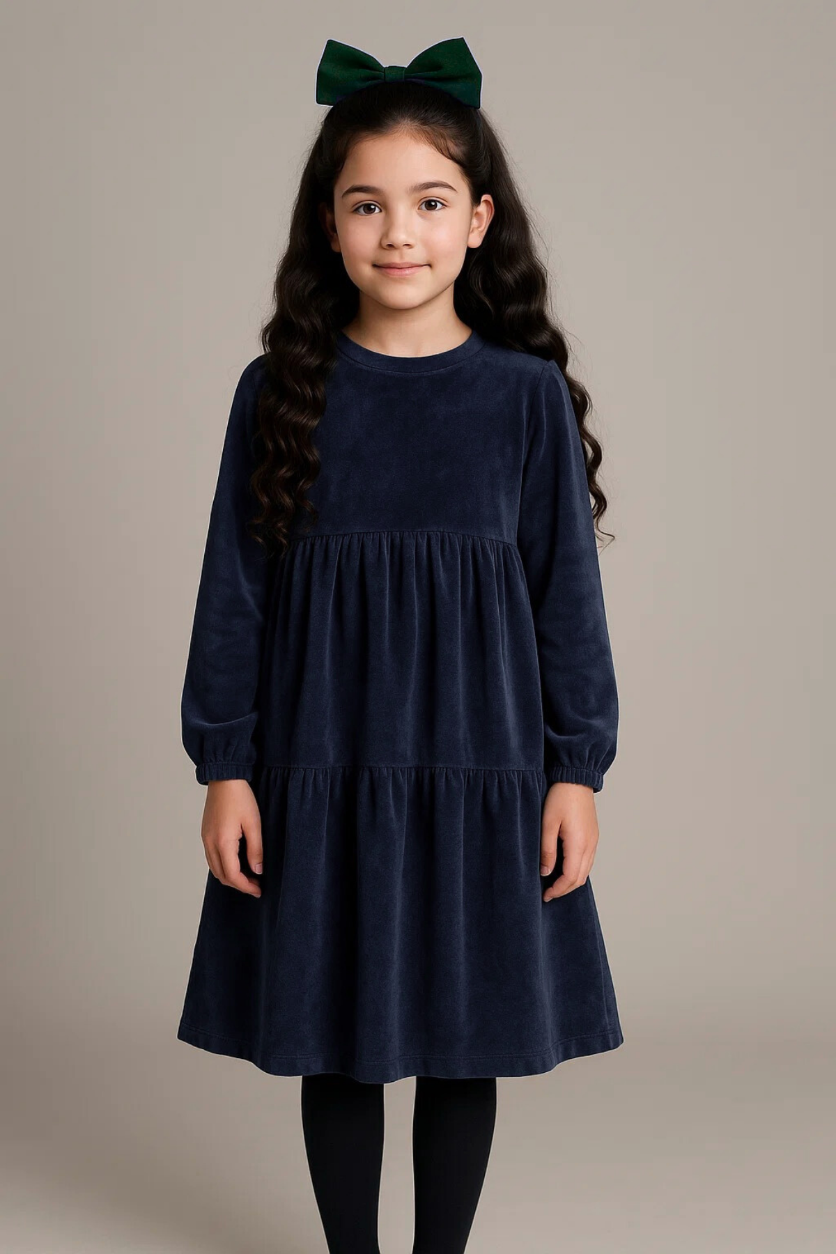Kadife Kız Çocuk Midi Boy Lacivert Elbise