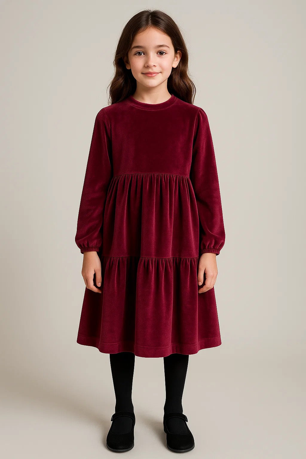 Kadife Kız Çocuk Midi Elbise