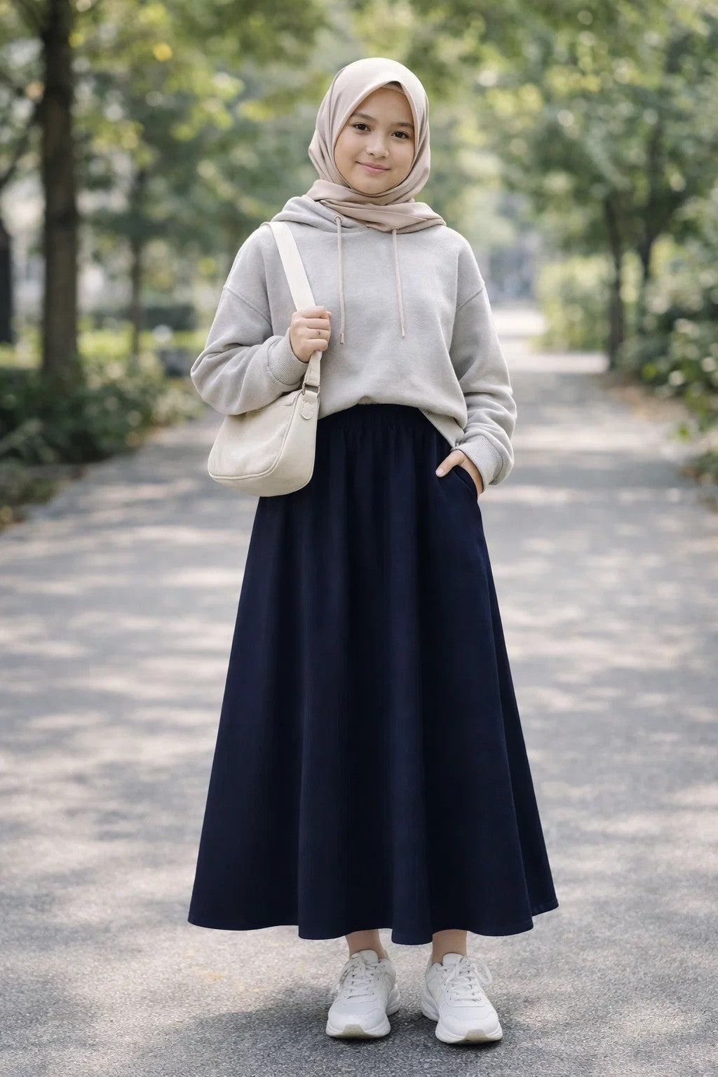 - Young koleksiyonuna özel, kız çocukları için tasarlanmış modaya uygun mevsimlik etek.; - Gizli cepleri sayesinde küçük eşyalarını güvenle taşıyabilirler.; - Gündüzden geceye her ortamda şıklığını koruyacak şekilde tasarlanmıştır.; - Beli lastikli yapısı ile konforlu bir kullanım sunar, gün boyu rahat etmelerini sağlar.; - Orta kalınlıkta kumaşı, mevsim geçişlerinde ideal sıcaklık dengesi sunar.; - 2 iplik dokuma tipi ile dayanıklılık ve yumuşaklık bir arada bulunur.; - Kloş silueti sayesinde hareketli ve dinamik bir görünüm kazandırır.; - Düz deseniyle sadelikten yana olanların tercihi olacak şekilde tasarlanmıştır.; - Young persona'ya hitap eden stil anlayışını yansıtan modern kesimlere sahiptir.; - Tüm sezonlar için uygunluk gösteren bu etek, yılın her döneminde tercih edilebilir.; - Türkiye menşei garantisi ile üretilmiştir; yerel üretim desteklenmektedir.; - Maxi boyuyla uzun ve zarif bir siluet çizer; her tür ayakkabıyla uyum sağlar.;