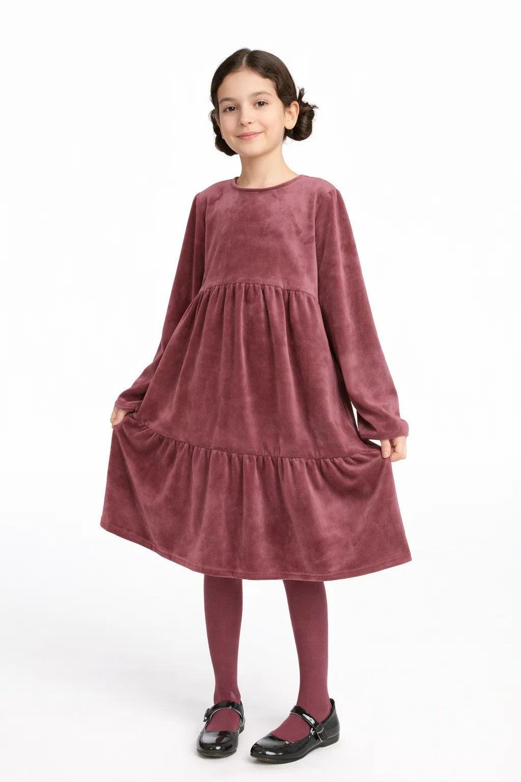 Kız Çocuk Modest Pamuk Kadife Midi Elbise