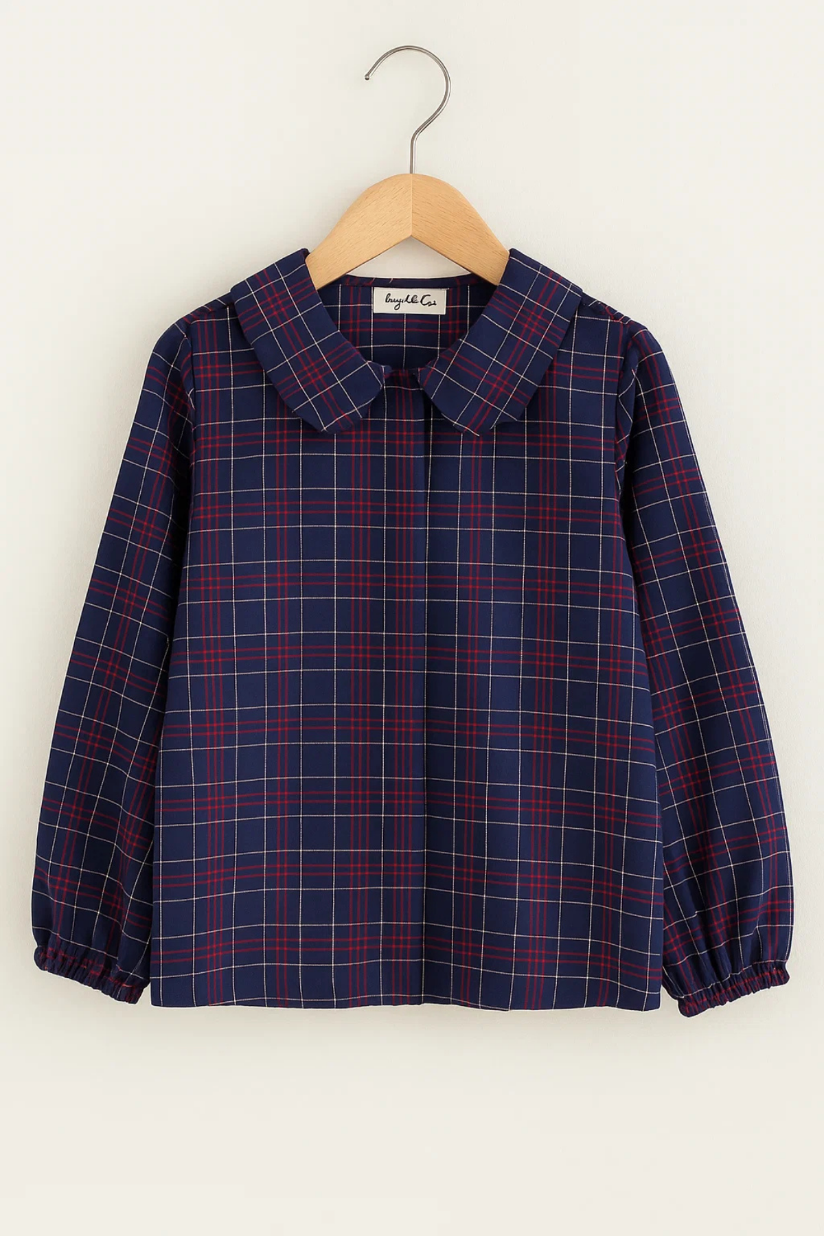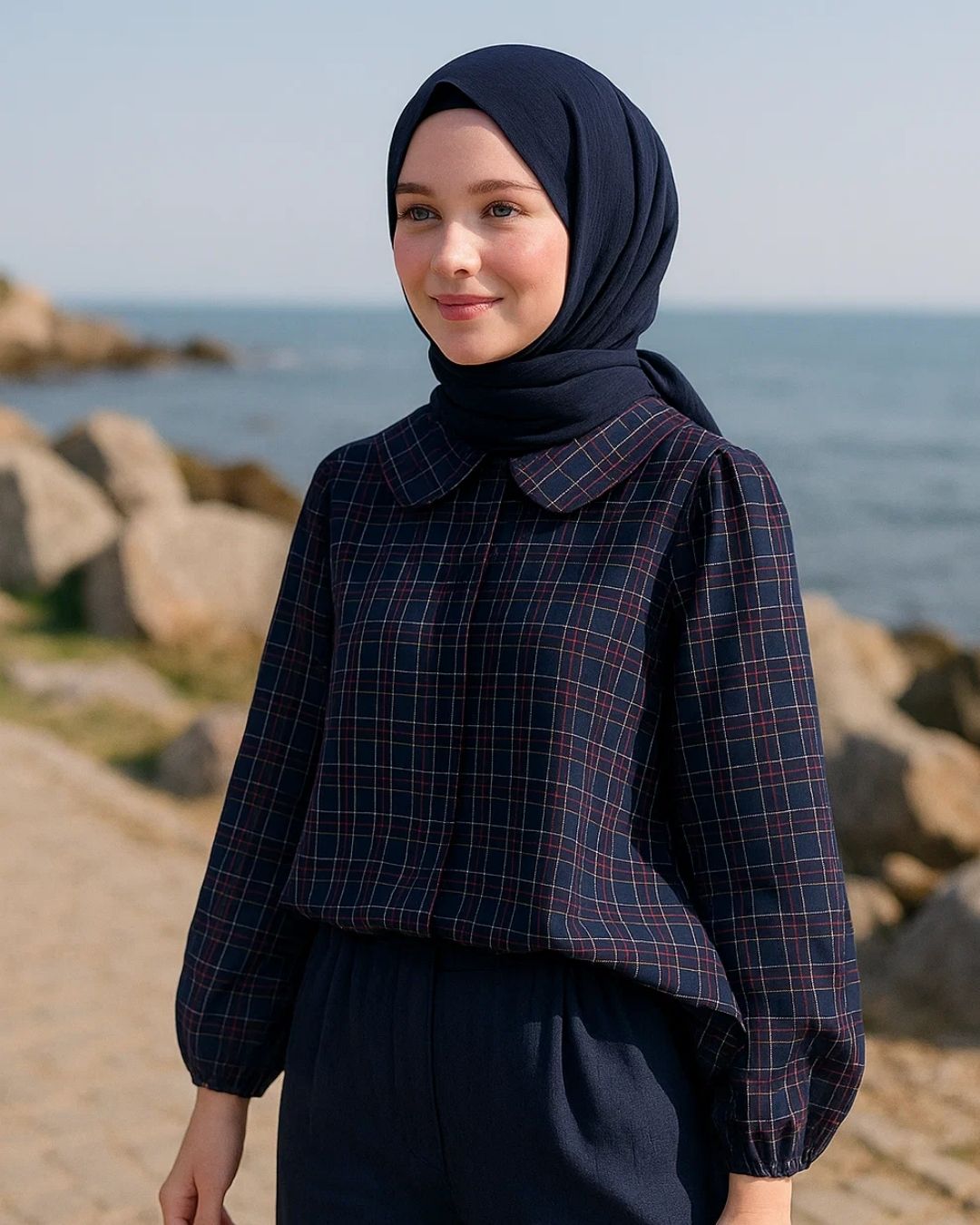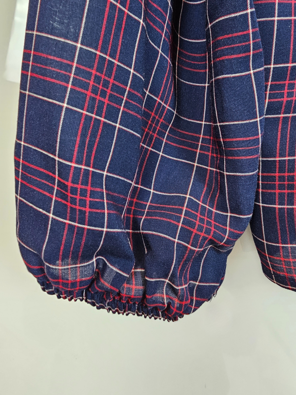 Lacivert Pileli Lastikli Bol Pantolon ve Kareli Lacivert Gömlek Takım