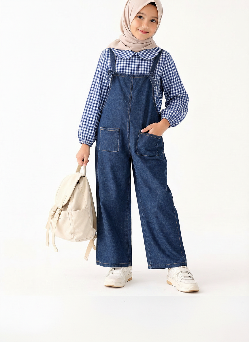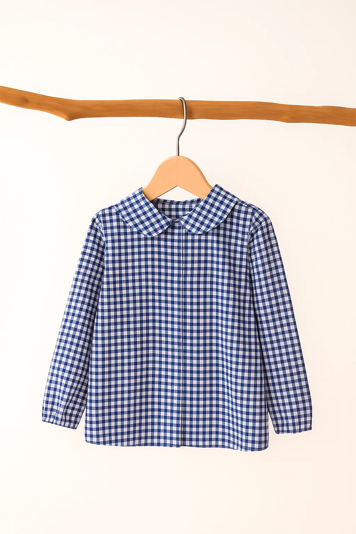 %100 pamuk kumaş: Nefes alır, terletmez, hassas ciltlere uygundur.; Mavi-beyaz pötikare desen: Zamansız ve çocuklara özel neşeli bir görünüm sunar.; Peter Pan yaka: Tatlı ve klasik bir yaka detayıyla fark yaratır.; Gizli pat tasarım: Düğmeler gizlenmiştir, sade ve düzenli bir ön görünüm sağlar.; Uzun kollu ve bilek lastikli: Çocukların rahat hareket etmesi için esneklik sunar.;