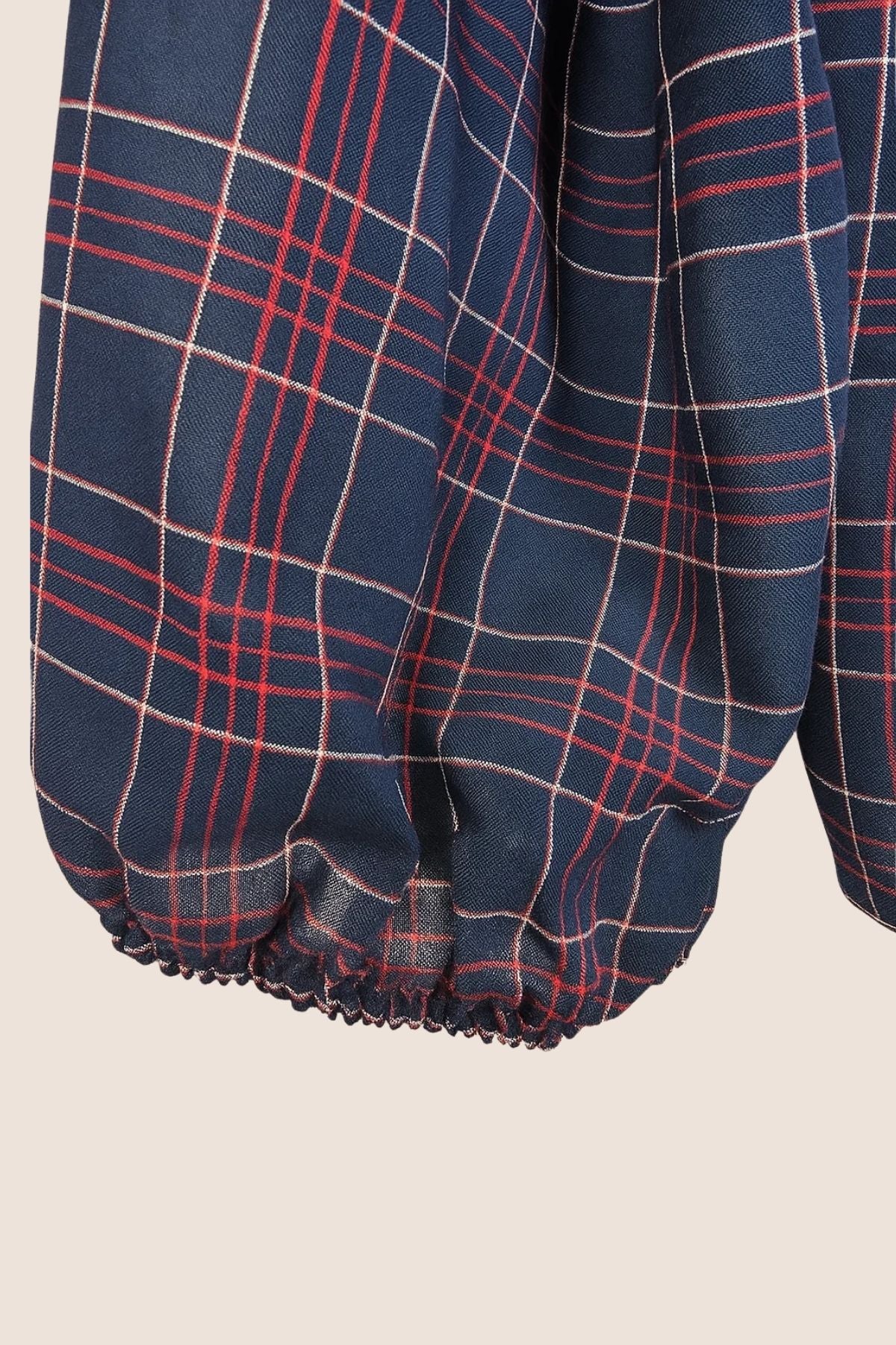 Lacivertin zarif tonları ile kırmızının enerjisini buluşturan Rubina Takım, kız çocukları için hem şık hem de rahat bir seçimdir. Kareli gömlek üzerindeki iki kırmızı kurdele detayı, tasarıma masalsı bir hava katarken, lastikli bel pantolon gün boyu konfor sağlar. Uzun kollu yapısı sayesinde dört mevsim kullanılabilir.
